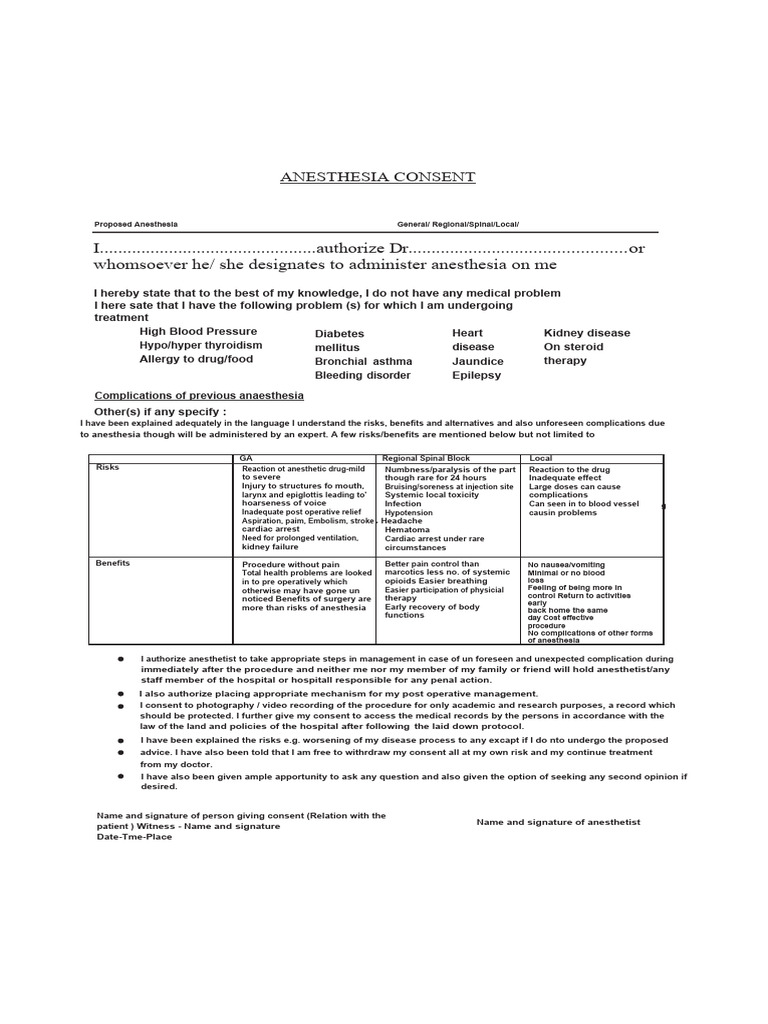 ANAESTHESIA CONSENT PDF Anesthesia Causes Of Death