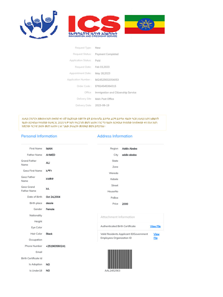 Apply For Ethiopian Passport Online PDF Birth Certificate Government